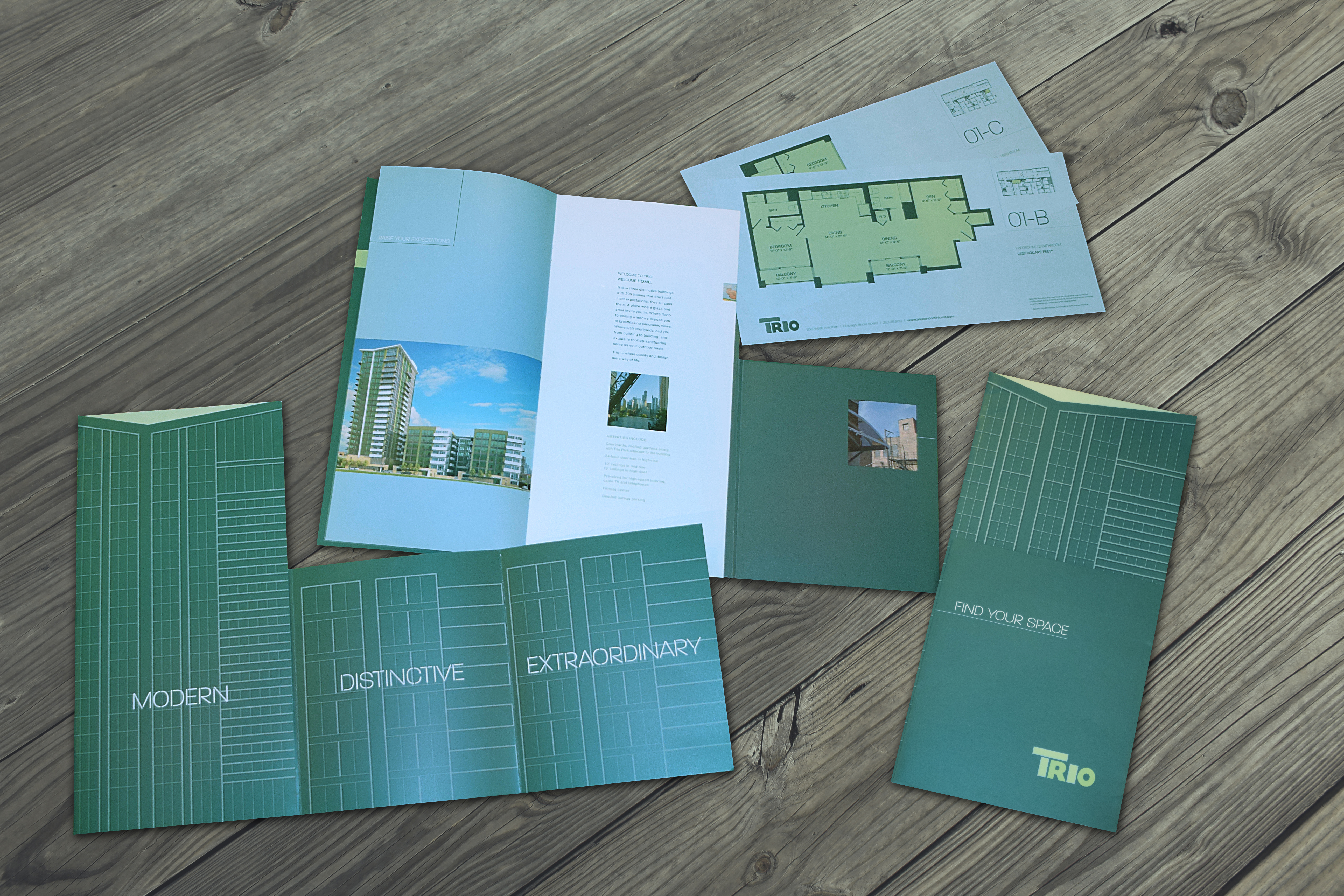 Responsible for conception to completion, this award winning piece features die cuts, embossing on vellum, and a pocket to store floor plans.