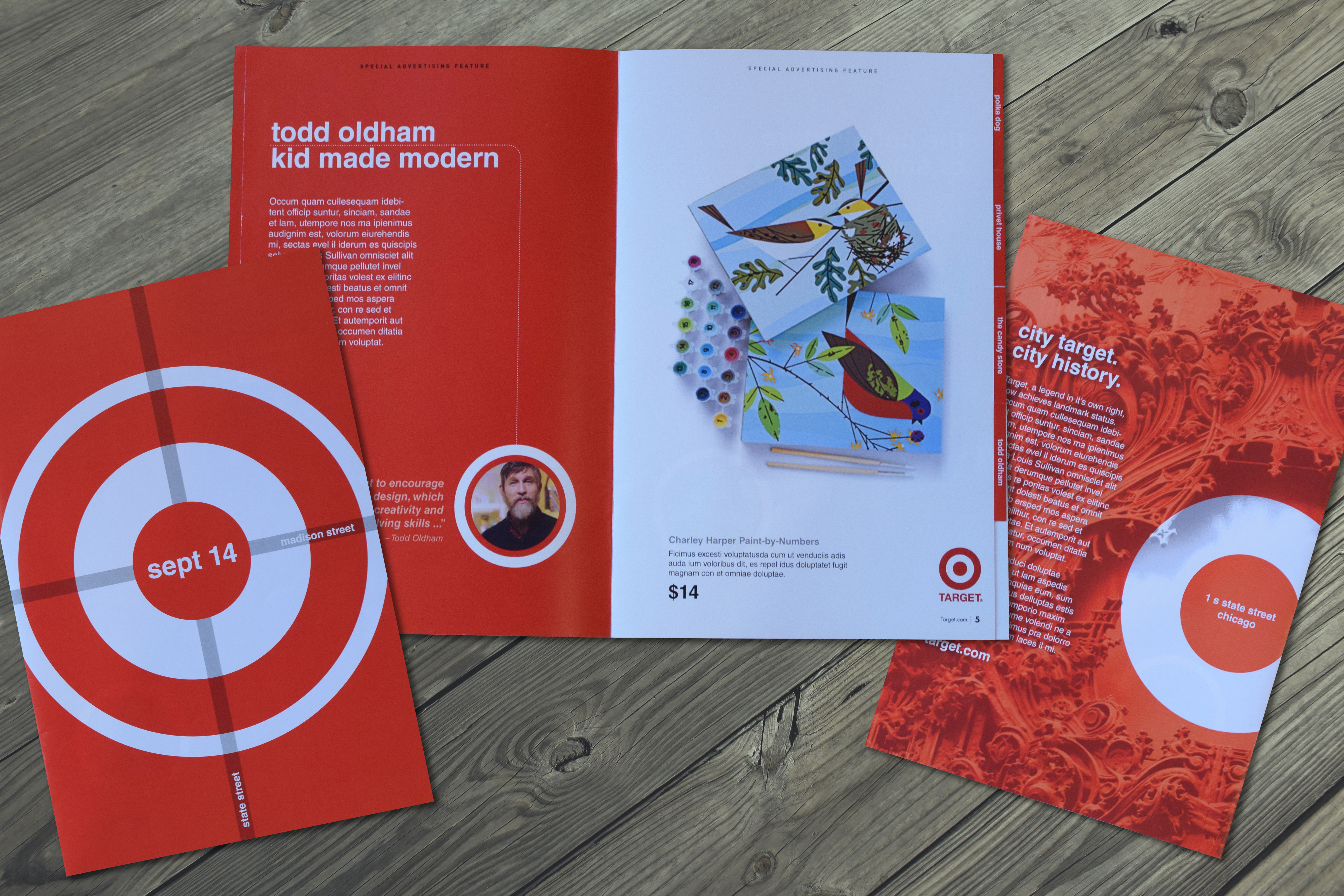 When Target was making its downtown Chicago debut, I proposed this unique special advertising feature insert for Chicago magazine. The idea was to stir up excitement for the iconic store opening in one of State Street’s most iconic historic buildings, featuring snippets of some of the whimsical products and modern decor available at the city Target, including a bit of history about the building and merchandise designers.