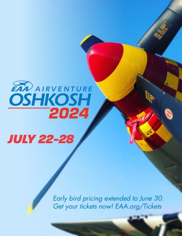 Newsletter ad for EAA Chapter 95 announcing extended early bird pricing, featuring a War Bird. I am responsible for the photography,