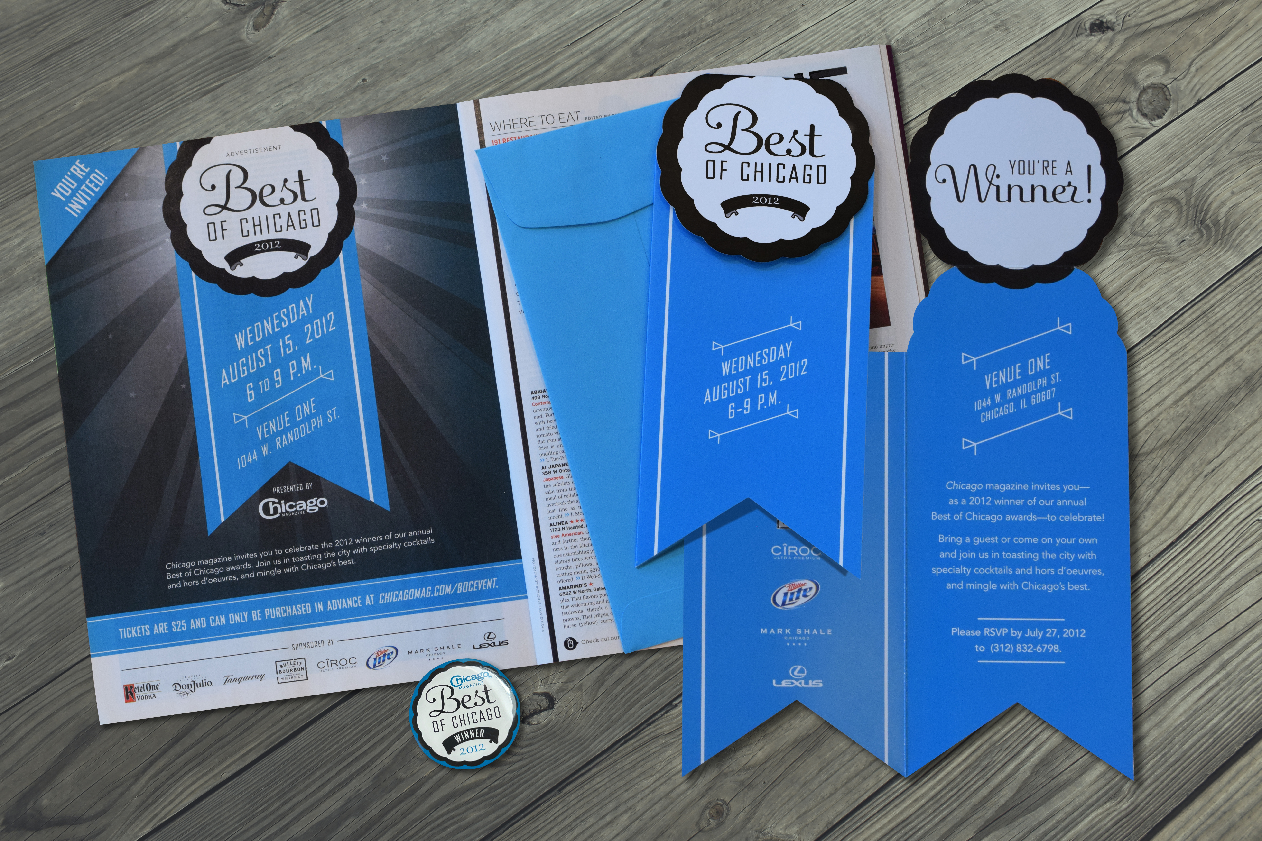 This year's diecut invitation was unlike any other Chicago magazine invite. All winners received a branded enamel magnetic pin.