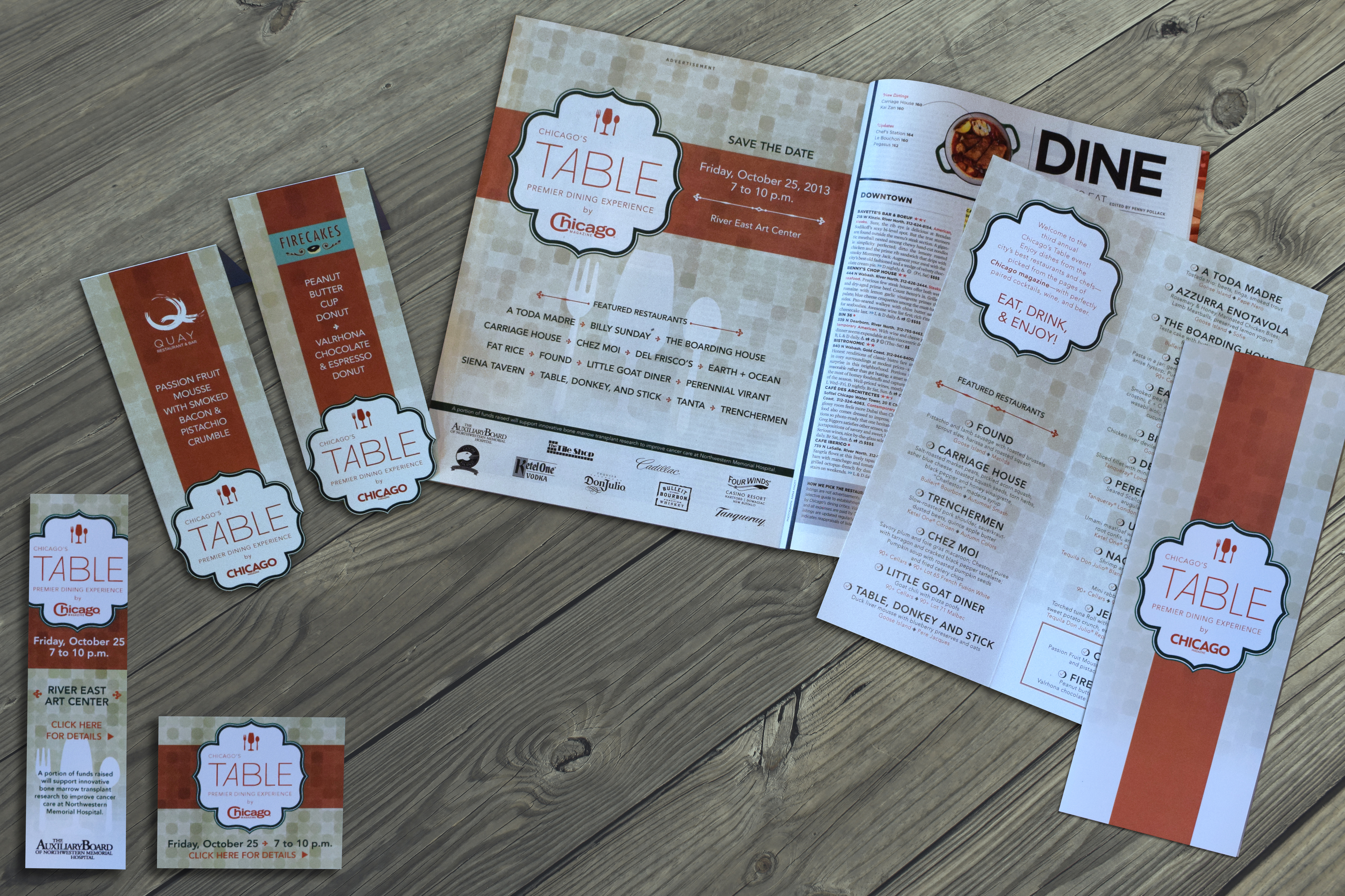 Chicago magazine’s annual premier foodie event, featuring the top restaurants in Chicago. I was responsible for the branding/image for the hottest dining experience in the city. Marketing included magazine ads, online banner ads, the menu, drop down “tray ribbons” and more.