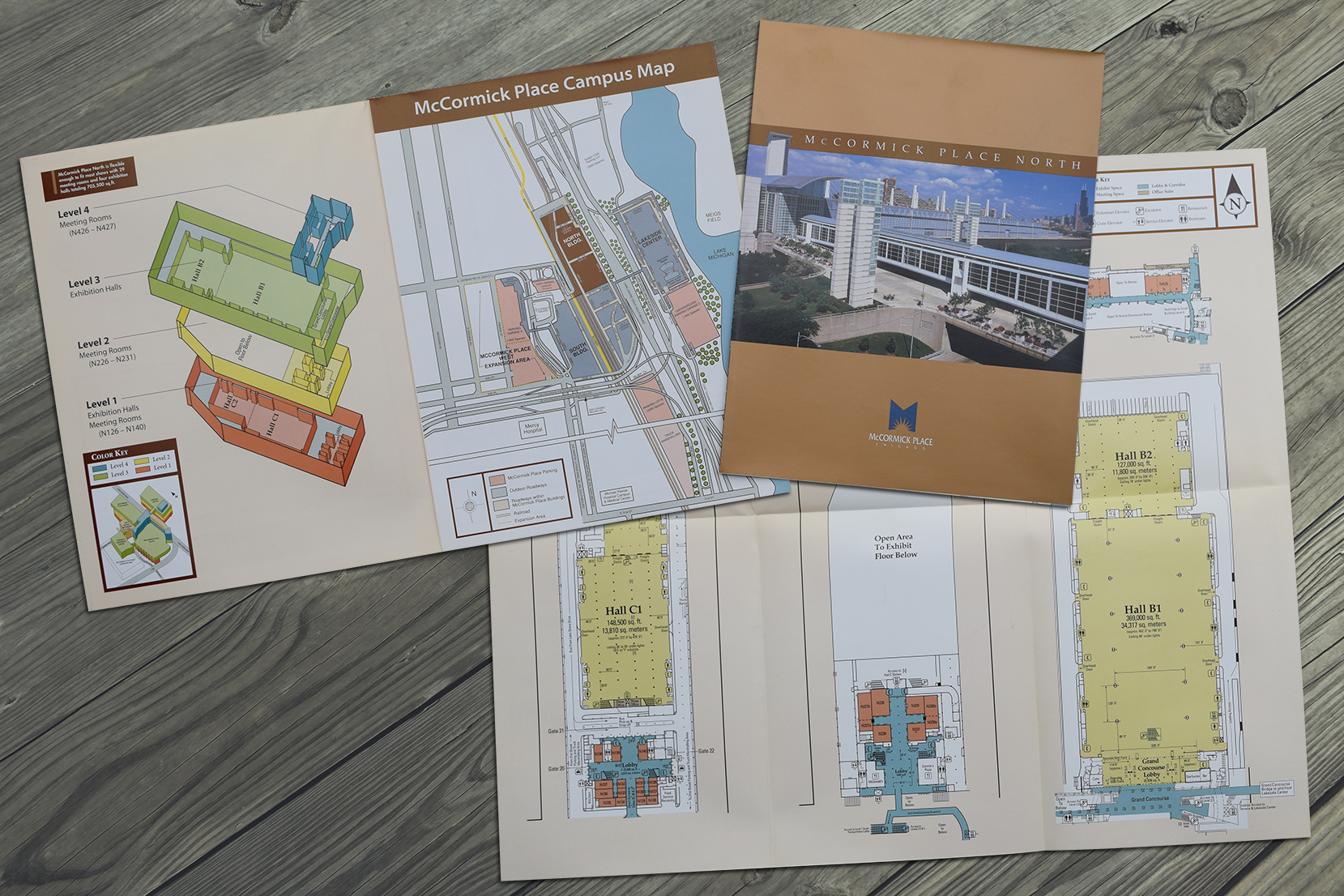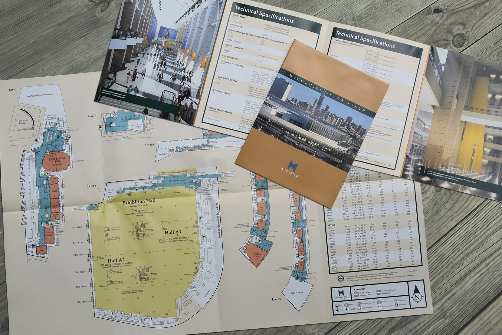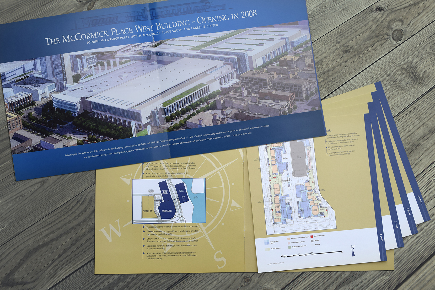 The McCormick Place West brochure features detailed floor plans grommeted to the back cover for easy access.